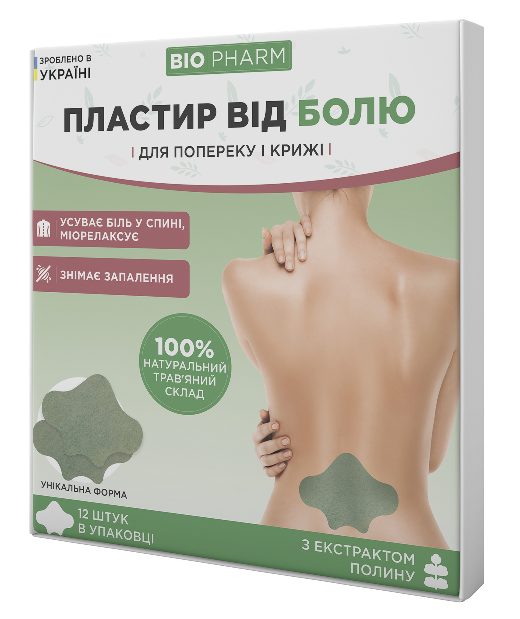 Знеболюючі пластирі для поясниці BIOPHARM на основі 10 цілющих трав